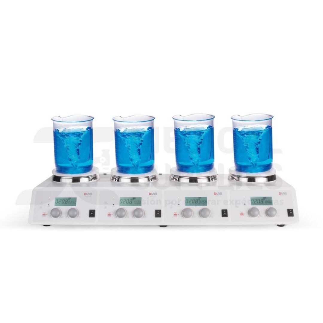 Este agitador de múltiples posiciones es ideal para su uso en síntesis química, análisis físico-químico y aplicaciones bio-farmacéuticas. Equipado con 4 posiciones de trabajo, permite configurar de manera independiente la temperatura y la velocidad en cada una, ofreciendo una gran capacidad total de trabajo de hasta 40 litros.