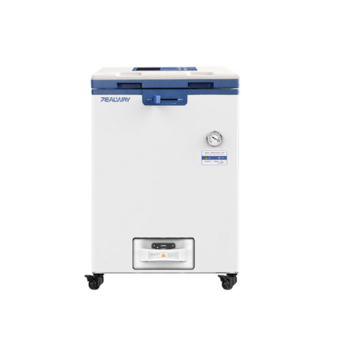 - Alimentación automática de agua (Solo para SF,SR) El instrumento está respaldado por un tanque de 28L, que agrega agua automáticamente a la cámara antes de la esterilización. De esta manera, la máquina se puede mover libremente en la habitación, sin necesidad de conectarla a un grifo de agua. Sin embargo, el suministro de agua por grifo o tubería también es una opción (se debe agregar en fábrica).