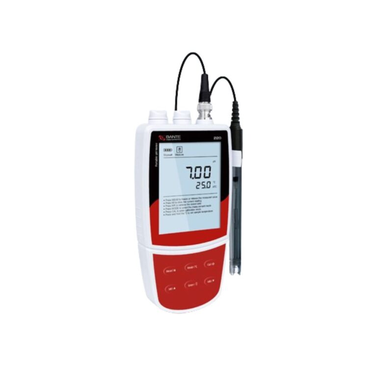 El medidor de pH portátil Bante220 es una opción económica y precisa para mediciones en campo o laboratorio. Ofrece calibración de 1 a 3 puntos y compensación automática de temperatura, con una precisión de 0,01 pH, lo que lo hace ideal para aplicaciones que requieren portabilidad y exactitud.