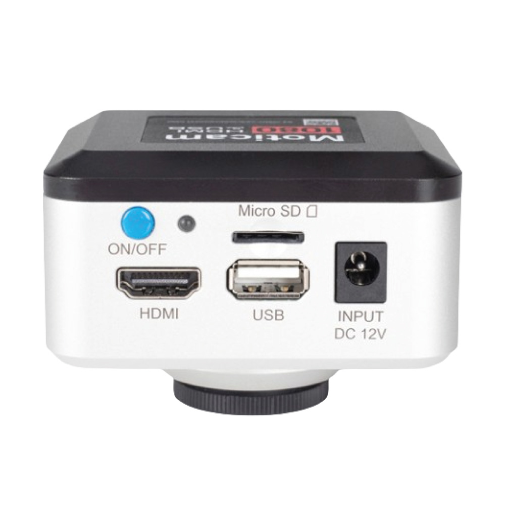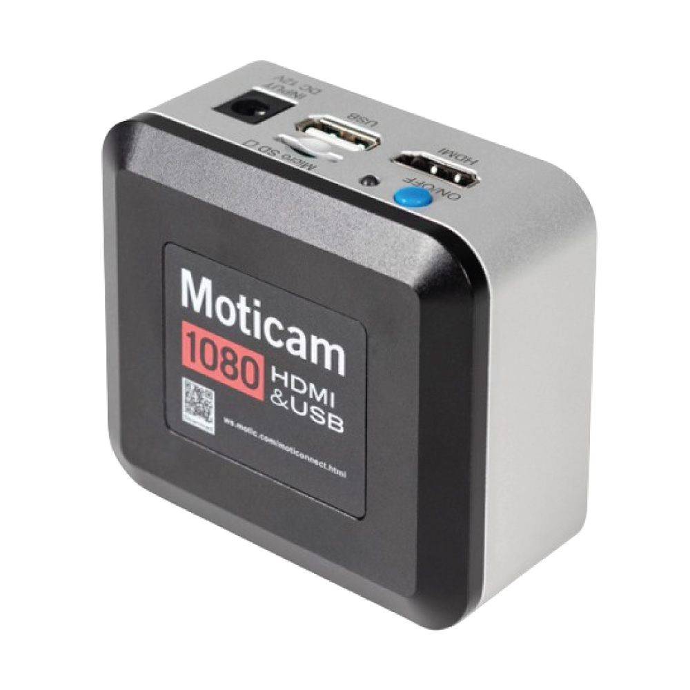 La Moticam 1080N, diseñada para facilitar su uso y la capacidad de generar imágenes en vivo rápidamente en Full HD (1920x1080px), muestra sus imágenes en vivo en una pantalla conectando la cámara a través del puerto HDMI. Realice mediciones en vivo, anotaciones, ajustes de imagen y más, gracias a su software incorporado que se puede utilizar directamente con un mouse USB conectado a la cámara. Con su ranura para tarjeta micro SD integrada, guardar imágenes no requerirá una computadora, lo que hace que organizar sus imágenes y videos sea mucho más fácil. El puerto USB le permite conectar la cámara a una computadora, incluso simultáneamente, y usar el software Motic Images Plus.