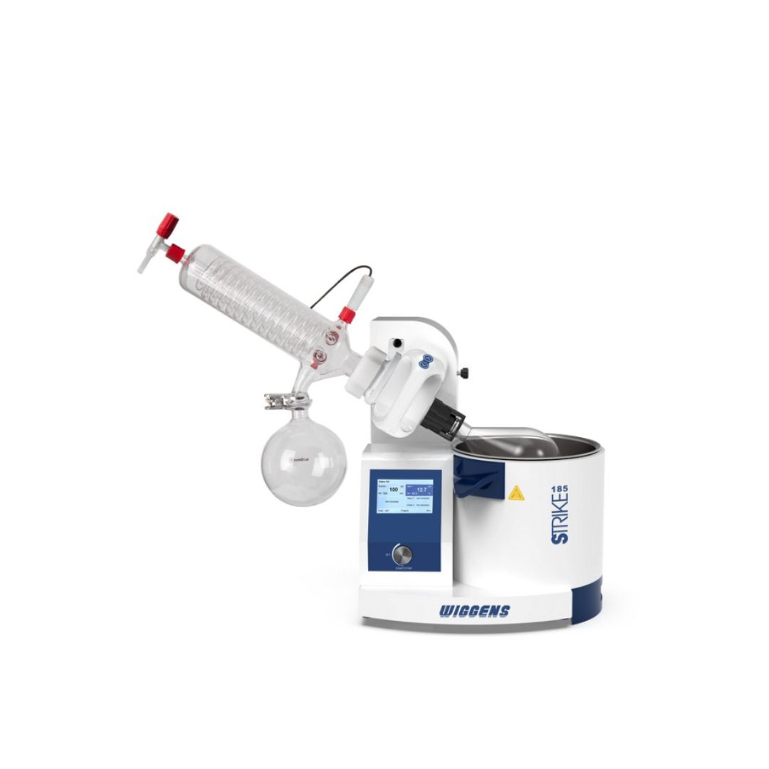 El evaporador rotatorio STRIKE 185 ofrece un rendimiento excepcional para procesos de separación, concentración y purificación, combinando un diseño ergonómico con controles intuitivos. Su interfaz táctil de alta visibilidad permite monitorear todos los parámetros en tiempo real y ajustar condiciones mediante perilla o pantalla, facilitando la operación y reduciendo tiempos mediante programas automáticos de destilación.
